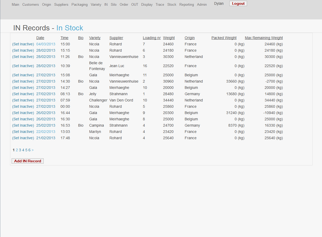 Each section has specific permissions allowed. Used to track products coming in, packing weight and lot numbering for tracing bad products.