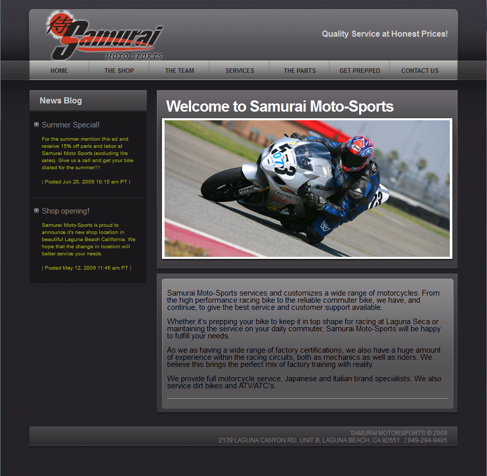 This site was built from PSD templates. Gave local motorcycle shop an online presence to display their services.